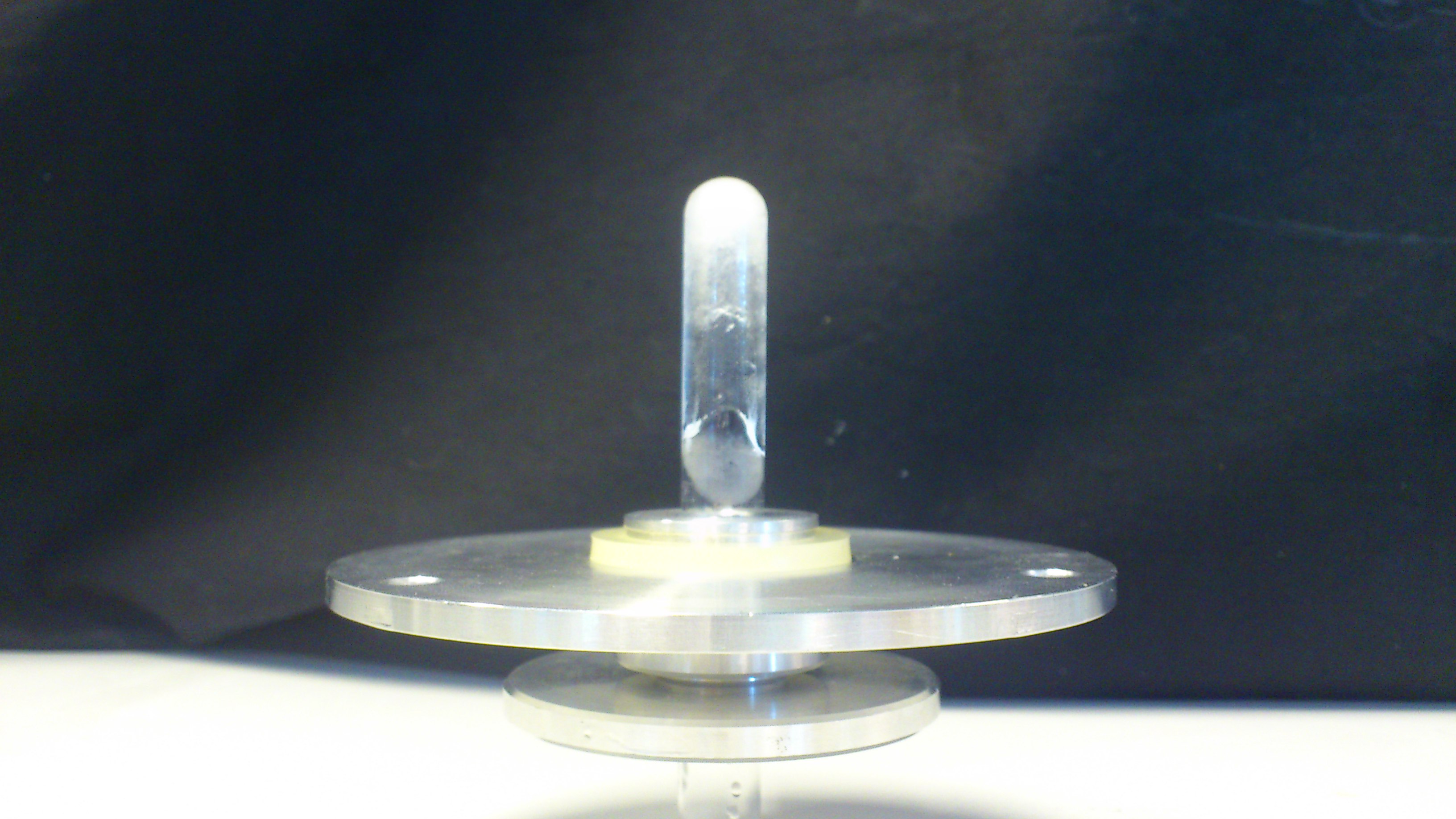 Eingefrorenes Wasser im Reagenzglas des Stirlingmotors