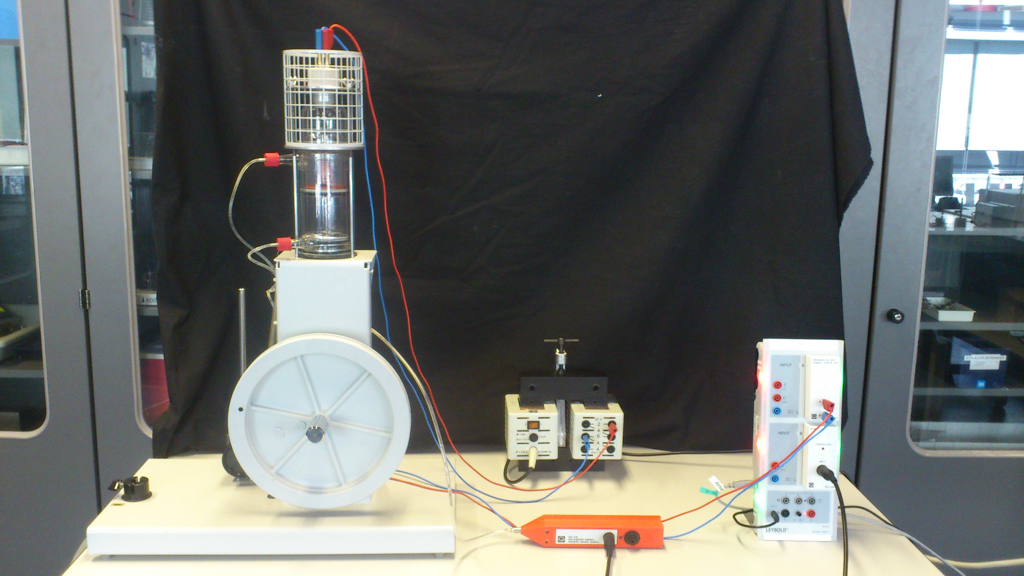 Stirlingmotor als Wärmekraftmaschine zusammen mit CASSY-Aufbau zum Aufnehmen des Kreisprozess