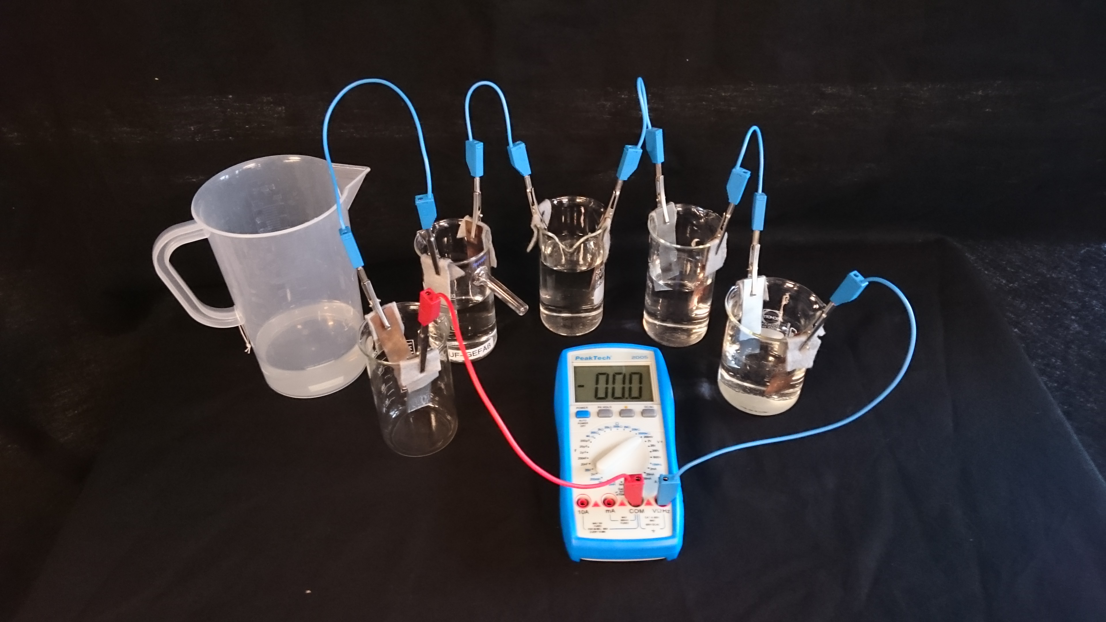 Experimentieraufbau zum Voltaelement selbstgemachtes Foto