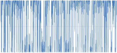 Für die y-Positionen ergibt sich ein ähnlicher Graph. Man sollte beide Graphen zusammen betrachten, allerdings ist auch schon der Graph für die x-Positionen sehr aussagekräftig. Man erkennt den Wechsel der Seiten durch den Durchgang durch die x-Achse und die Schwingungen, die nur auf einer Seite stattfinden.