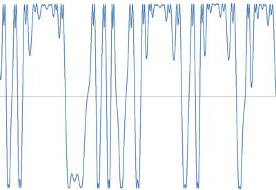 Dieser Versuch zeigt sehr überzeugend die Eigenschaft der Selbstähnlichkeit chaotischer Systeme. In der Grafik erkennt man dies durch sehr gleich aussehende Graphenverläufe. Vor allem die kleineren Schwingungen auf einer Seite sind immer wieder sichtbar und sehr ähnlich.