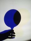 Farbiger Schatten mit blauer und weißer Leuchte. Im Bereich des weißen Schattens entsteht aufgrund von Simultan-Kontrasten ein gelber Farbeindruck. | |