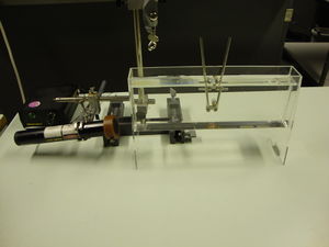 Da es sich bei Luft um ein Medium mit generell relativ geringer Teilchendichte handelt, sind die zu beobachtenden Effekte nicht besonders stark ausgeprägt. Um eine Fata Morgana im kleinen Labormaßstab erzeugen zu können, weichen wir deshalb auf ein entsprechend dichteres, aber ebenso dynamisches und transparentes Versuchsmedium aus: Wasser.