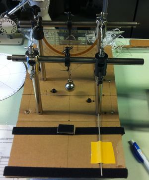 Hinweis: Die Schnur des Pendelkörpers ist jeweils in V-Form am Gerüst anzubringen, damit Schwingungen lediglich entlang der Fahrunterlage möglich sind. Andernfalls gewinnt das System einen zusätzlichen Freiheitsgrad und man erzielt unter Umständen nicht den gewünschten Effekt.