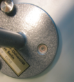 Der Aufsatz mit der Waage wird in den Stativfuß gesteckt und mit der Feststellschraube fixiert. Die beiden Kalibrierungsschrauben am Stativfuß werden so eingestellt, dass die Libelle mittig ausgerichtet ist (siehe Abbildung 3). Der Senkkörper wird an dem vorgesehenen Haken am Ende des Lastarmes eingehängt. Die Waage sollte sich jetzt ins Gleichgewicht einpendeln, so dass die Spitze des Waagebalkens der Spitze des Stativfußes genau gegenüber steht (siehe Abbildung 4). Tut sie dies nicht, obwohl der Stativfuß richtig kalibriert ist, ist dies ein Hinweis auf eine fehlerhafte Justierung der Waage oder des Senkkörpers.