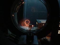 Es ist möglich, dass sich beim Variieren der Parameter die Kreisbahn der Elektronen zu einer Spiralbahn (Abb.5) verformt. Diese Verformung kann durch andere magnetische Quellen wie dem Erdmagnetfeld entstehen. Durch erneutes Einstellen des Fadenstrahlrohrs kann dieses Phänomen unterbunden werden.